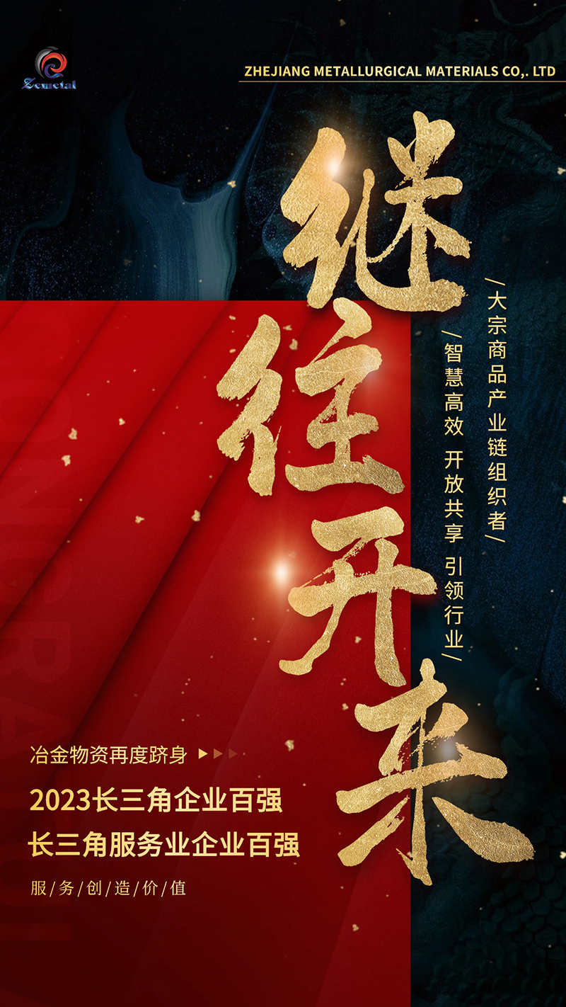 12月6日,浙江省冶金物資有限公司再次入圍2023長三角企業百強榜單,位列98位,躋身服務業企業百強榜單35位。