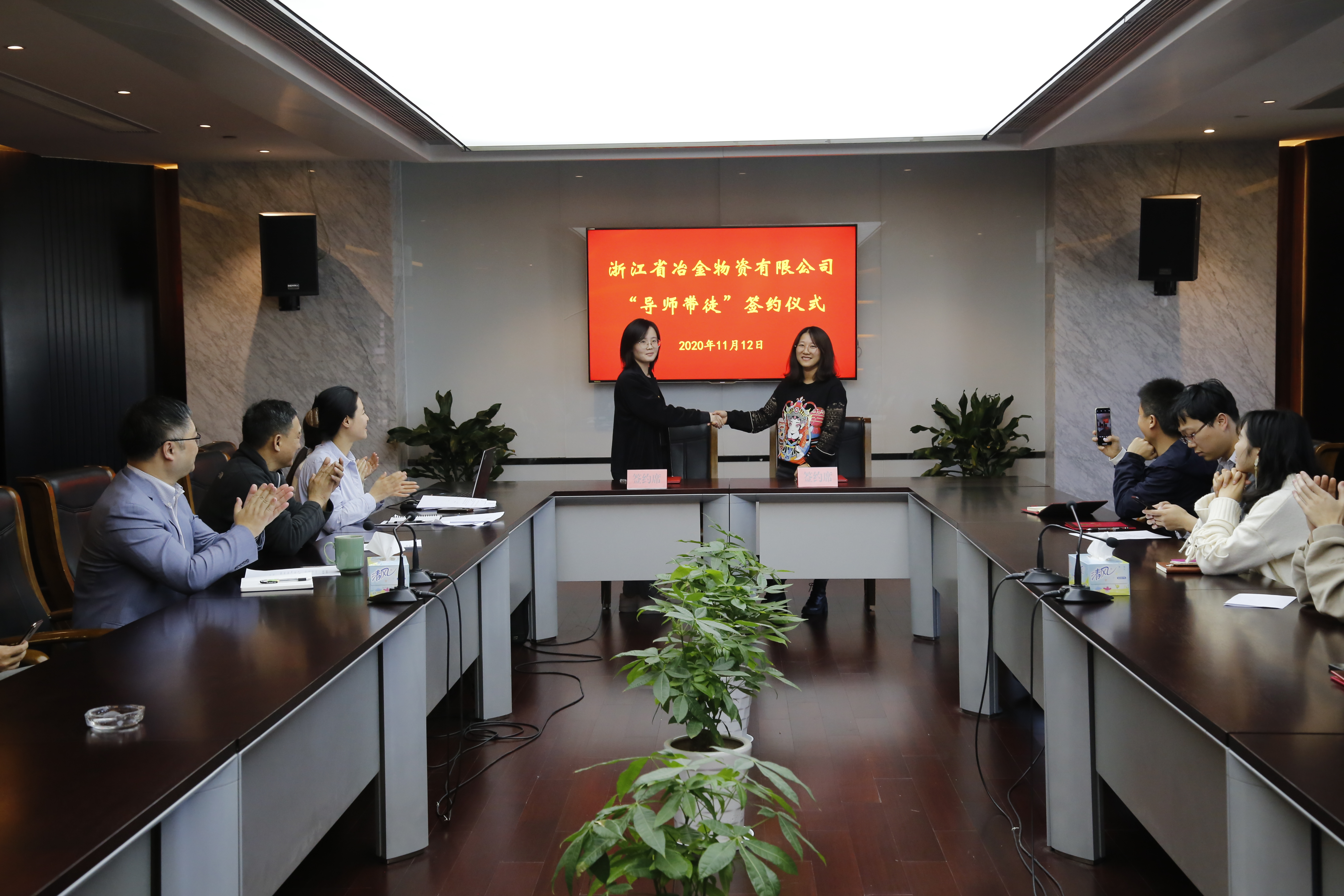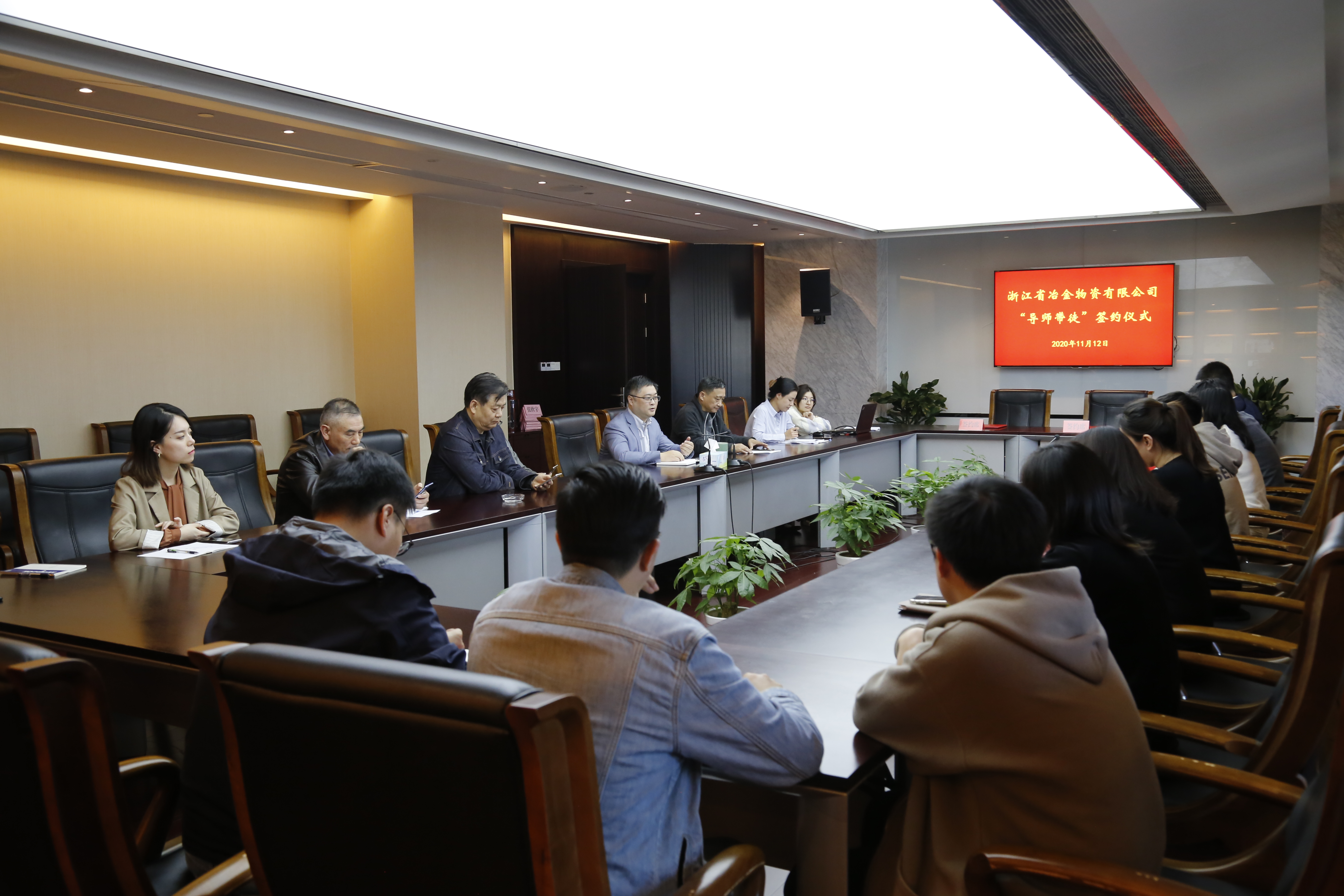 近日,浙江省冶金物資公司舉行2020年新職工“導師帶徒”簽約儀式。冶金物資公司黨委書記、董事長鄭浩出席簽約儀式并講話,儀式由工會主席鐘智萍主持。